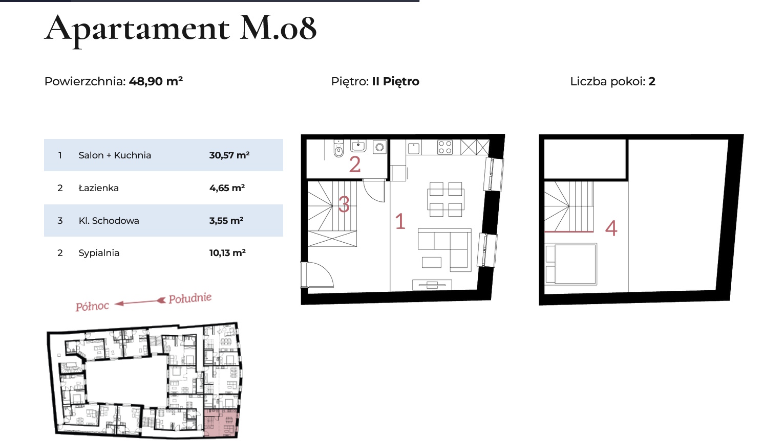 49 m2 2 pokoje Piętro II apartamentowiec